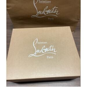 This Stylish CHRISTIAN LOUBOUTIN Shoe Box w/Gift Bag both in a rich tan hue w/Signature CHRISTIAN LOUBOUTIN white logo. Perfect for adding elegance to your look.