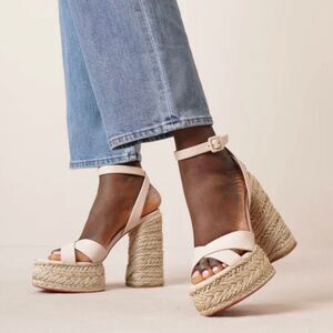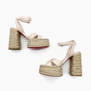 CHRISTIAN LOUBOUTIN Super Mariza Platform Espadrille Block Heels Size 40 Beige