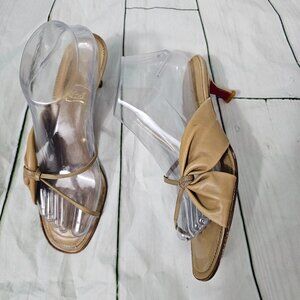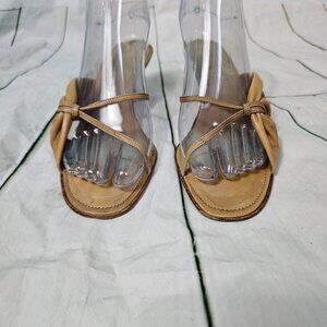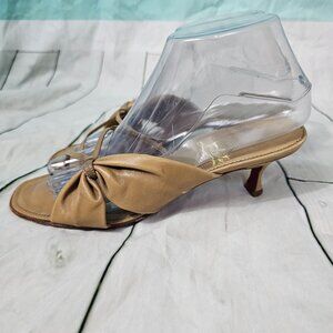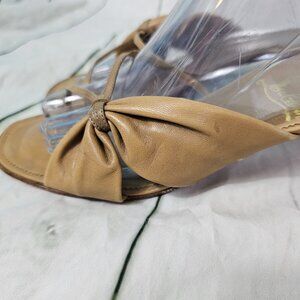 CHRISTIAN LOUBOUTIN Tan Leather Strappy Bow Detail Slip On Sandals~Size 39