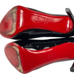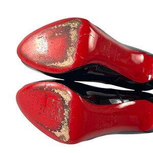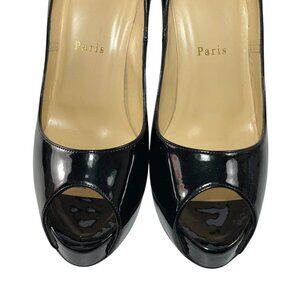 CHRISTIAN LOUBOUTIN VERY PRIVE Black Patent Platform Stiletto Pumps 37.5 7.5