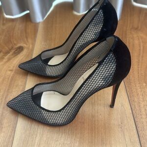 CHRISTIAN LOUBOUTIN Follies Resille 100 suede-trimmed mesh pumps size 37.5