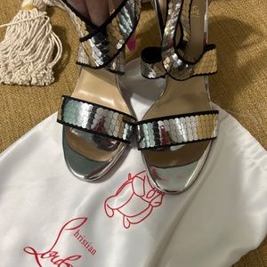 Women’s silver high heels, worn once only beautiful summer sandal. Euro size 40 don’t have the box anymore but do have the CL shoe bags for the shoes still