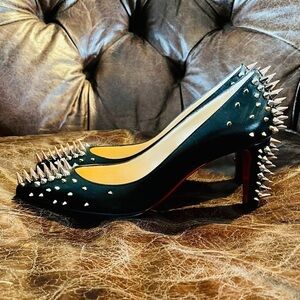 Presenting the most comfortable yet fierce like the T-Rex of heels, Christian Louboutin “Dinosa” black Nappa leather, 70mm heels, clad in multicolor short to long studded spike embellishment all around. Strikes fear and curiosity in the hearts of others gawking at your feet as you walk past elegantly ready to strike. Lol.