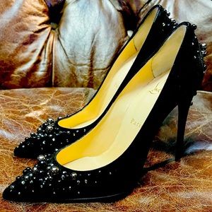 CHRISTIAN Louboutin, Pigalle Follies 100mm. Suede metallic studs & Strass EU38.5