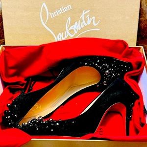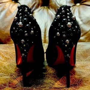 CHRISTIAN Louboutin, Pigalle Follies 100mm. Suede metallic studs & Strass EU38.5