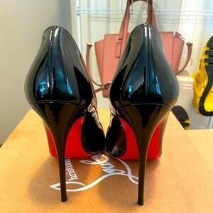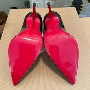 Christian Louboutin’s “Pigalle Follies” in 85mm heel hight. Screams “Sexy” down to the bone. An iconic heel, must have for every woman’s closet. The curves accentuate the toe cleavage and the slender lines elongate the feet and leg silhouette to put you on the pedestal. I can’t believe I am putting these up for sale. Get it before I change my mind. These heels were worn a couple times for roughly 5 to 10 min to basically do a modeling shoot. This pair is in an immaculate condition. Sole has a mirror shine polymer from Casali Italy for $150 for longevity. I’ve only walked on carpeted and bare marble or hard wood floors. Not a scratch or scuff anywhere, still had tags, like new.