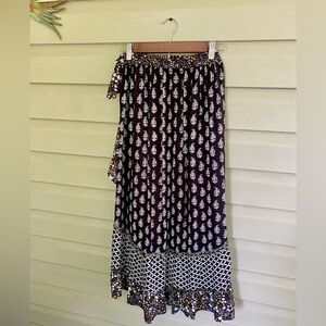 CHRISTIAN SIRIANO Boho chic ruffle midi Skirt sz S paisley foral mixed print EUC