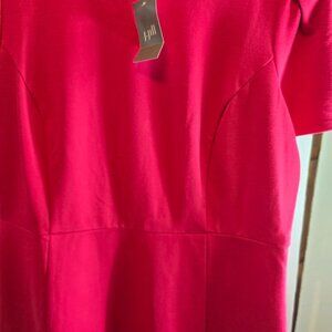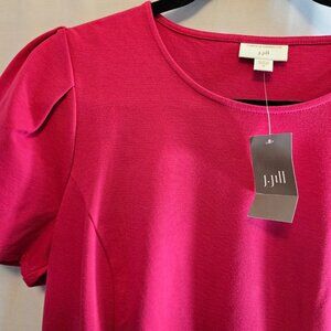 NAME: CHRISTIAN SIRIANO FOR J. JILL PINK FIT AND FLARE DRESS SIZE MEDIUM NWT KNEE LENGTH CREW NECK PLEATED SHORT SLEEVES FRONT AND BACK HEMLINE SLITS CLASSIC FIT VERSATILE DAY TO EVENING BUSINESS CASUAL SPECIAL OCCASTION