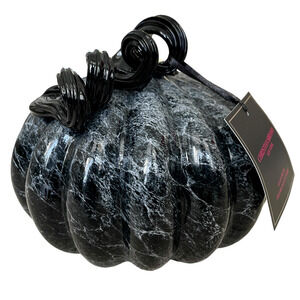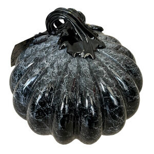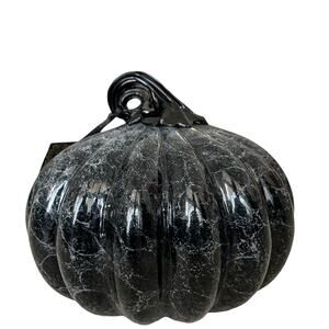 CHRISTIAN SIRIANO Hand Blown Art Glass Pumpkin Black Marble Designer Decor New