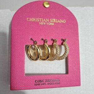 CHRISTIAN SIRIANO NEW YORK HOOP EARRINGS GOLD TONE CUBIC ZICORNIA