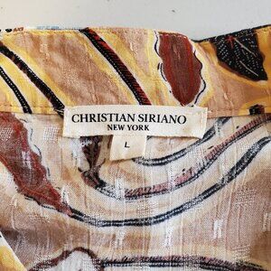 CHRISTIAN SIRIANO NY SZ L Flowy Long-sleeve Button-up Rayon Top Blouse Tie Front