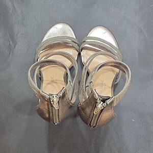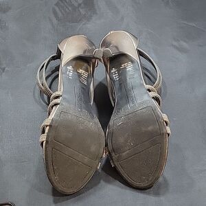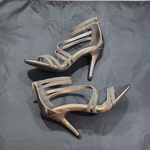 CHRISTIAN SIRIANO WOMEN'S PU ANKLE STRAP OPEN TOE RHINESTONE HEELS SANDALS SIZE 5 COLOR GUNMETAL Our rhinestone stiletto heels are the perfect glamorous addition to your partywear this season, with an on-trend rhinestone stiletto heel, the team with a dress, and a statement clutch to finish your prom look.Occasion: Prom, Weekend, Evening Vamp: PU; Outsole: Rubber; Heel: ABS Buckle Stiletto Heel Open Toe Ankle Strap Rhinestone Prom Sandals Heel Height: 3 3/8 inches THIS ITEMS IS PRE-OWNED EXCELLENT CONDITION WITH ONLY LIGHT SIGNS OF WEAR IF ANY CHECK THE PICTURES