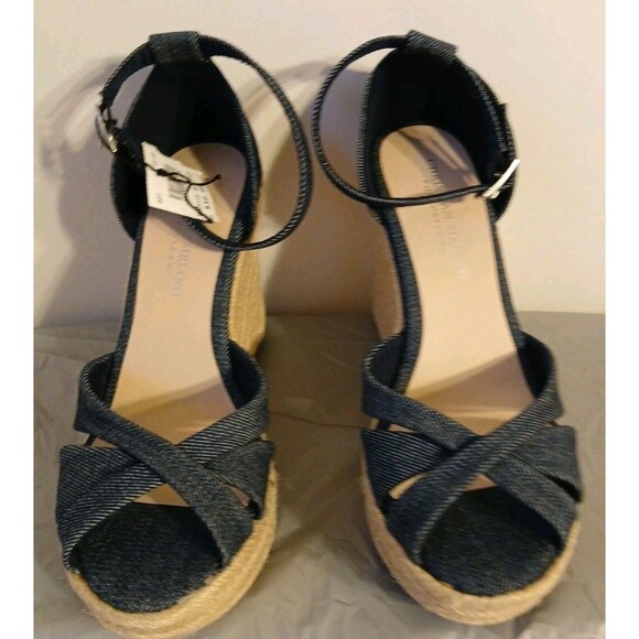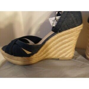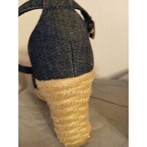 CHRISTIAN SIRIANO blue Denim Ankle Strap Espadrille Platform Wedge Heels 6.5 New