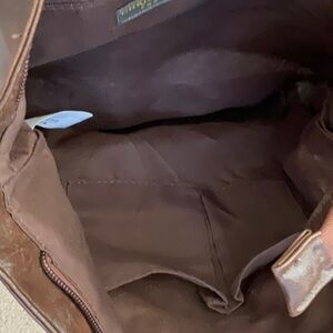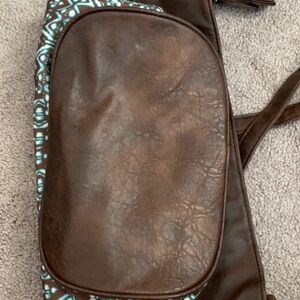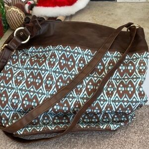CHRISTIAN SORIANO BROWN FAUX LEATHER AND PATTERN PURSE