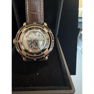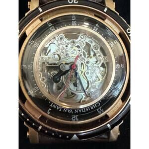 The Christian Van Sant Men's Dome Silver Dial Watch - CV0744 is a stylish timepiece designed for men. It features a round stainless steel case with a silver skeleton dial, complemented by a brown leather band. With automatic movement, water resistance up to 30 meters, and scratch-resistant mineral crystal, this watch offers both functionality and durability. Watch only, does not have original box.