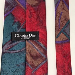 CHRISTIAN DIOR MONSIEUR VINTAGE SILK TIE RED PURPLE ABSTRACT SATIN 3.75" X 56"