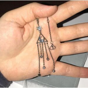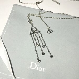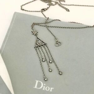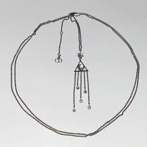 CHRISTIAN DIOR Silver Pendant Lariat Necklace MOON & STARS