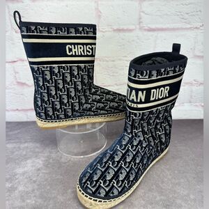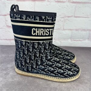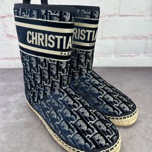 CHRISTIAN DIOR Velvet Oblique Granville Espadrille Boots 38.5 Deep Blue NEW