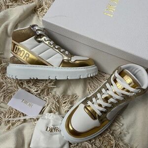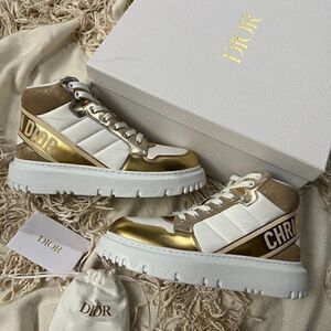 CHRISTIAN DIOR D-Player High Top Sneakers White & Gold