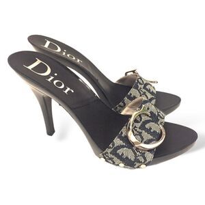 CHRISTIAN DIOR Monogram Trotter Mule Heels with Large Silver C & D Detail EU39
