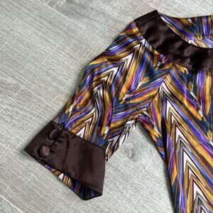 CHRISTIANE CELLE CALYPSO 100% Silk Brown Purple Elbow Sleeve Mini Dress Women’s