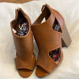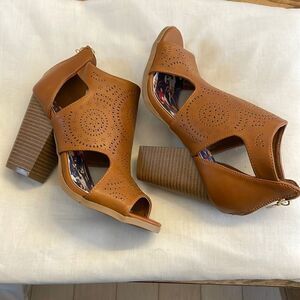 CHRISTIAN LACROIX CUT OUT CAMEL COLORED SHOOTIES. NEW