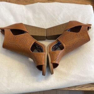 CHRISTIAN LACROIX CUT OUT CAMEL COLORED SHOOTIES. NEW.