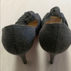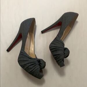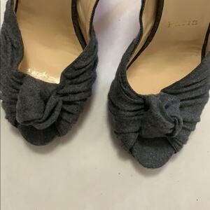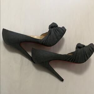 CHRISTIAN LOUBOUTIN GRAY FANNEL LADY GRES TWISTS KNOT PEEPS TOE PUMPS SIZE 7 1/2