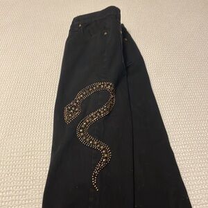 CHRISTINA V Snake Embroidered Design Denim Jeans