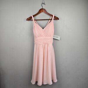 CHRISTINA WU Short Chiffon Dress Petal Pink Womens Size 10 Blush Pastel Wedding