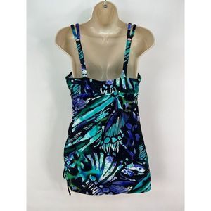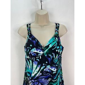 CHRISTINA 1 piece Swimsuit 10 D Tropical Hip Minimizer Turquoise Black w Skirt