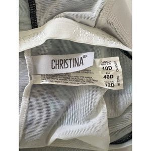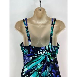 CHRISTINA 1 piece Swimsuit 10 D Tropical Hip Minimizer Turquoise Black w Skirt, has attached bottom that is covered by skirt