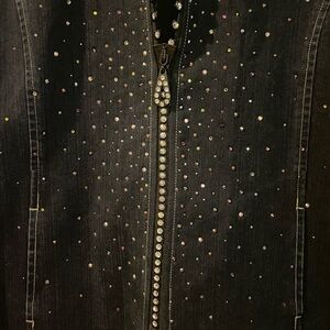 EUC-like new with no signs of wear. Maybe worn a couple of times. Size large Christine Alexander swarovoski crystal bling embellished denim jacket. Armpit to armpit 21” and centerback length is 24”. Tote 15.
