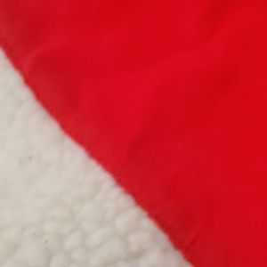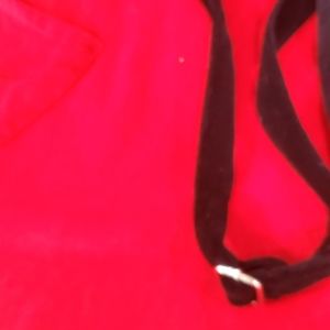 red black and white Ms or Mr Clause apron ith 2 pockets. velvet look mterial