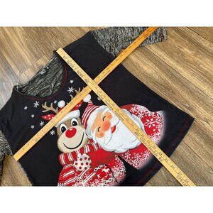 CHRISTMAS BLOUSE WOMENS SIZE XL SANTA CLAUS & REINDEER BLACK GRAY STRETCH