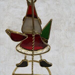 Bring holiday cheer to your home with this festive stained glass Santa Claus card holder, the perfect way to showcase your favorite Christmas cards. Handcrafted with colorful stained glass pieces in rich reds, greens, and whites, Santa comes to life in a mosaic design that glows beautifully when placed near light. This charming holiday décor is also functional, designed to hold and display up to three received Christmas cards. It’s a wonderful way to highlight special greetings from loved ones while adding a warm, cheerful touch to your seasonal décor. Ideal as a centerpiece on mantles, entryway tables, or sideboards, this Santa card holder also makes a thoughtful gift for collectors or anyone who loves unique holiday accents.