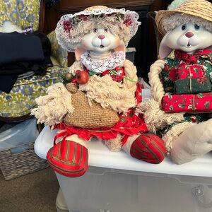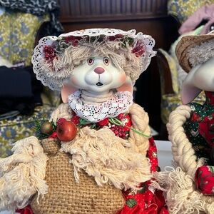 T. Enjoy these adorable Christmas decor bunnies in your home for the holidays. They have porcelain faces and are dressed in red, green & beige outfits. Adults & Kids alike love “their cuteness”. 2 for the price of one 🎄