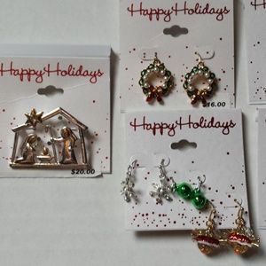CHRISTMAS EARRINGS (6 ) & 1 MANGER PENDANT NEW