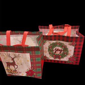 CHRISTMAS GIFT BAGS SET OF 4 IN DIFFERENT DESIGNS - STURDY WITH HANDLES - REUSEABLE - SIZE IS SHOWN