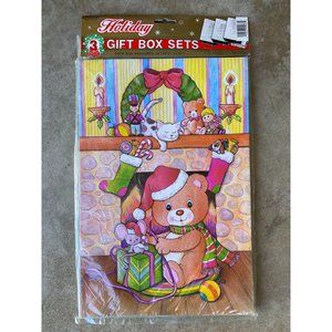 This set of vintage Crest Christmas gift boxes is new in its original packaging and features 3 14" boxes with a teddy bear design.