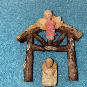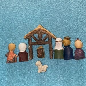 CHRISTMAS HOUSE NATIVITY miniature 8 piece very detailed vintage set