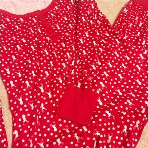 Never worn!! Cute pajama set for LADIES SIZE LARGE. Bright red with white polka dots and reindeer!! No size tag in them. They were purchased from an online boutique. Excellent condition!