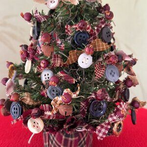 CHRISTMAS MINI BUTTON TREE:NEW HANDMADE W/ BUTTONS/BELLS/FABRIC BOWS/ETC.