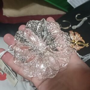 Christmas ornaments Crystal clear snowflake and bird in brand new condition. The rest were worn once only. Bird and snowflake are heavy glass.