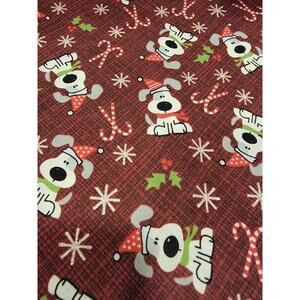 CHRISTMAS PUPPY CANDYCANES METALLIC SNOWFLAKES COTTON FABRIC 20in Quilting New
