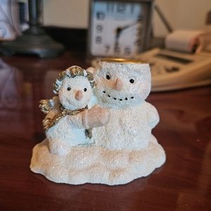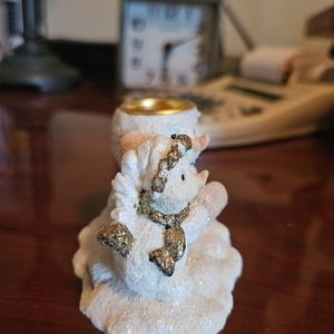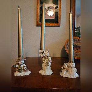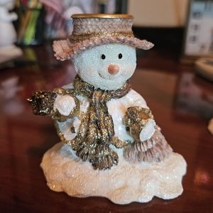 Set of three adorable white and gold snow man candle holders figurines