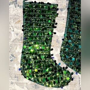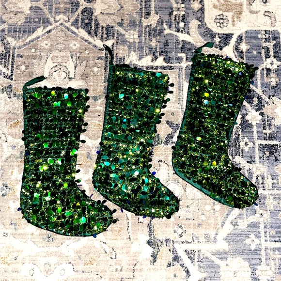 3 green shiney christmas’s stockings never used