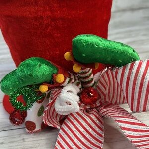 CHRISTMAS TREE TOPPER Red Top Hat elf legs sticking out