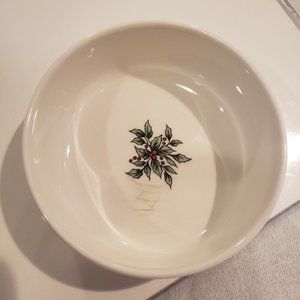 Good condition. We have found no chips, dings, divots, etc. Item has crazing (which means small and minor cracks in the glazed layer of the item). This is very common on all glazed pottery pieces, but we wanted to point it out, as it is hard to see in the pics. Also on the bottom of the dish interior under the mistletoe it has what appears to be some underlining highlight in a darker color (see interior pic of item), which we cannot tell if this is part of the art or a defect. It is smooth there (as well as all over the dish), and it appears to be glazed over, which would mean it was from the factory. Again, overall in good condition. No chips. Priced accordingly.