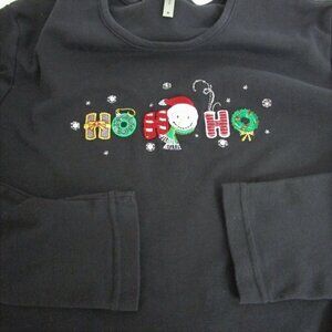 CHRISTMAS Top T-Shirt Medium HO HO HO Bling Long Sleeve Santa Wreath Embellished